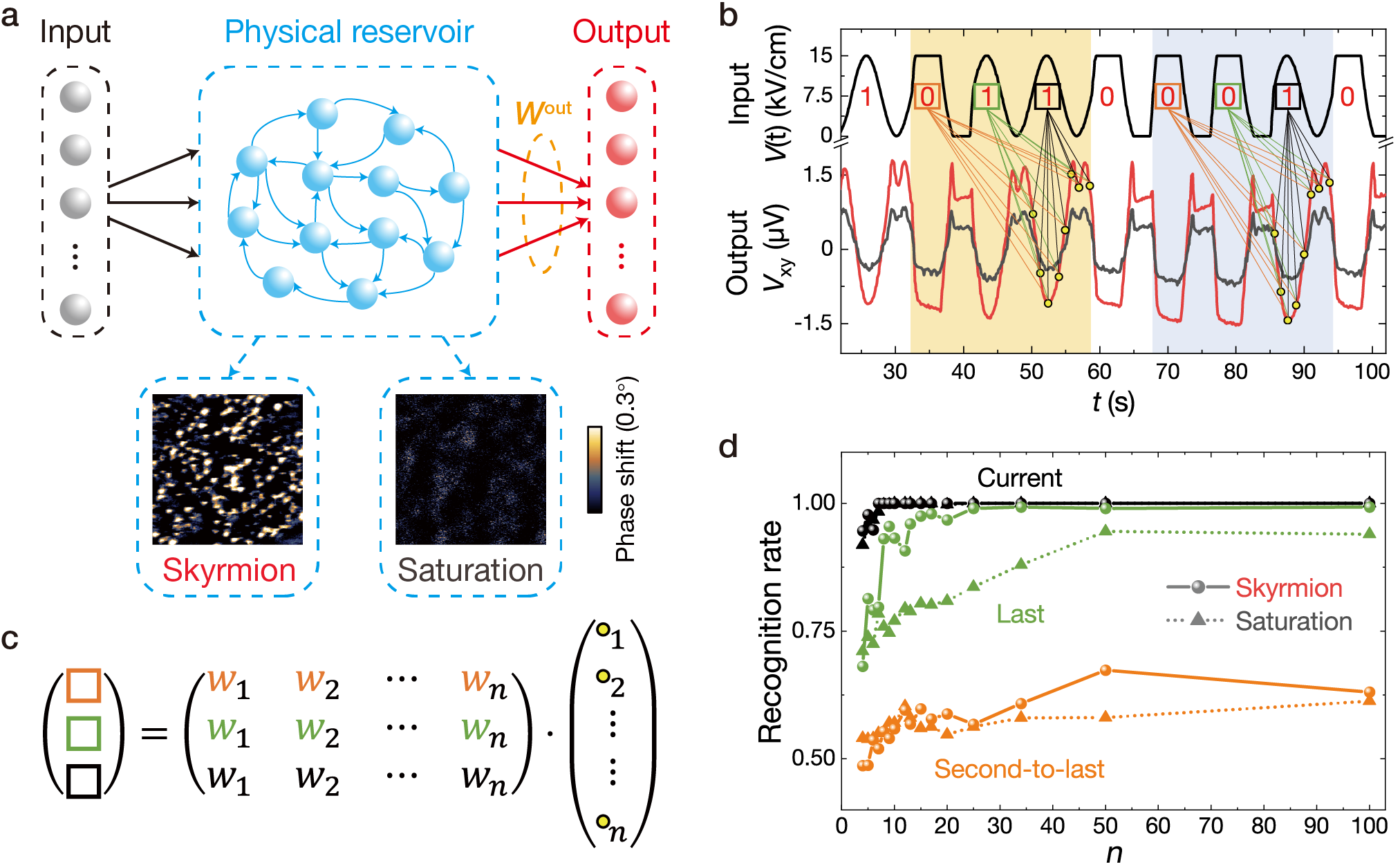 Y. Sun, et al. Experimental demonstration of a skyrmion-enhanced strain-mediated physical reservoir computing system. Nat. Commun. 14, 3434 (2023).