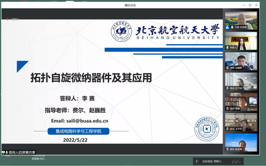 这场线上答辩的另一端是由五位专家组成的答辩委员会:中国科学院物理研究所沈保根院士,清华大学赵永刚教授,北京科技大学王守国教授,中国科学院半导体研究所王开友研究员以及北京欧美大片ppt免费大全雷娜副教授。答辩还吸引了学院相关领域100余名师生旁听。