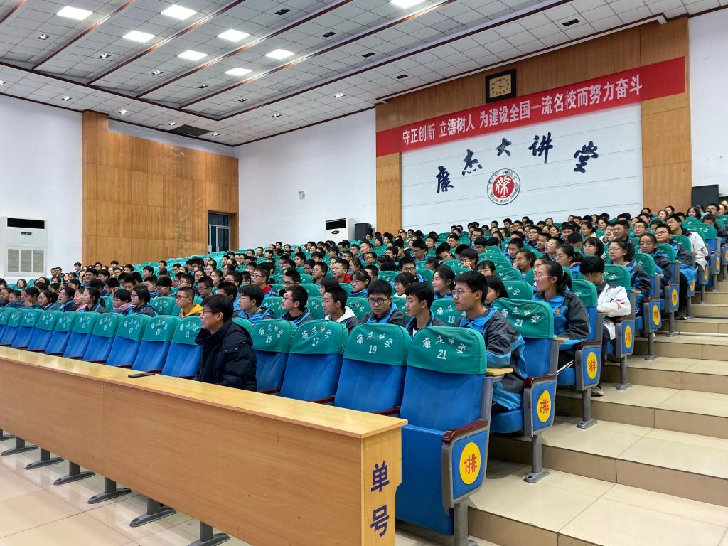 康杰中学校友、北航微电子学院博士生闫韶华介绍了自己的成长经历和科研方向,鼓励师弟师妹们努力学习,考入北航,为国铸“芯”。