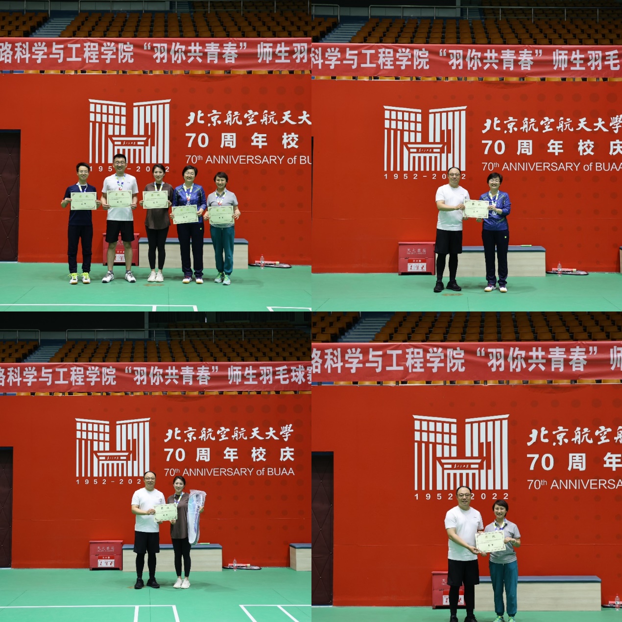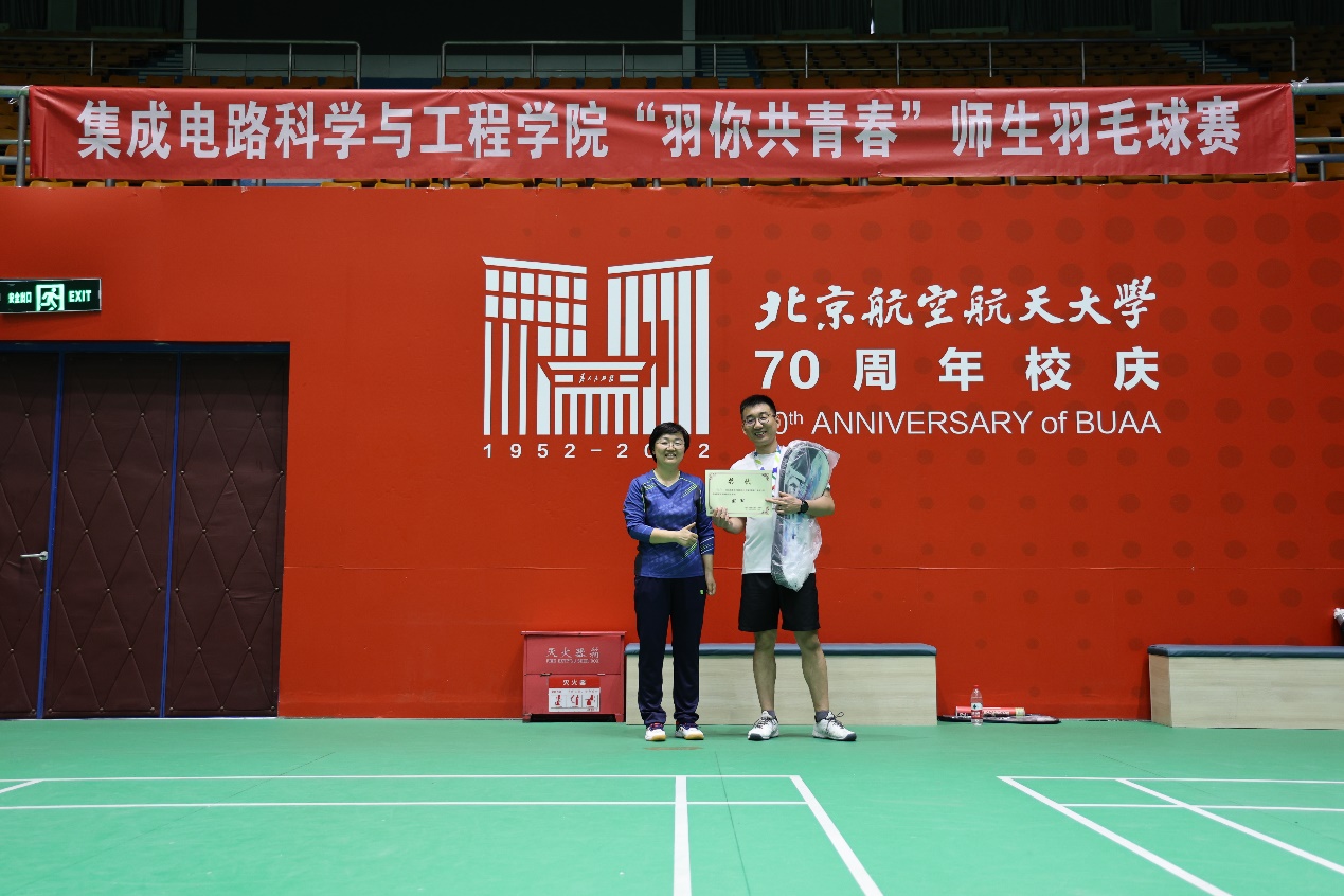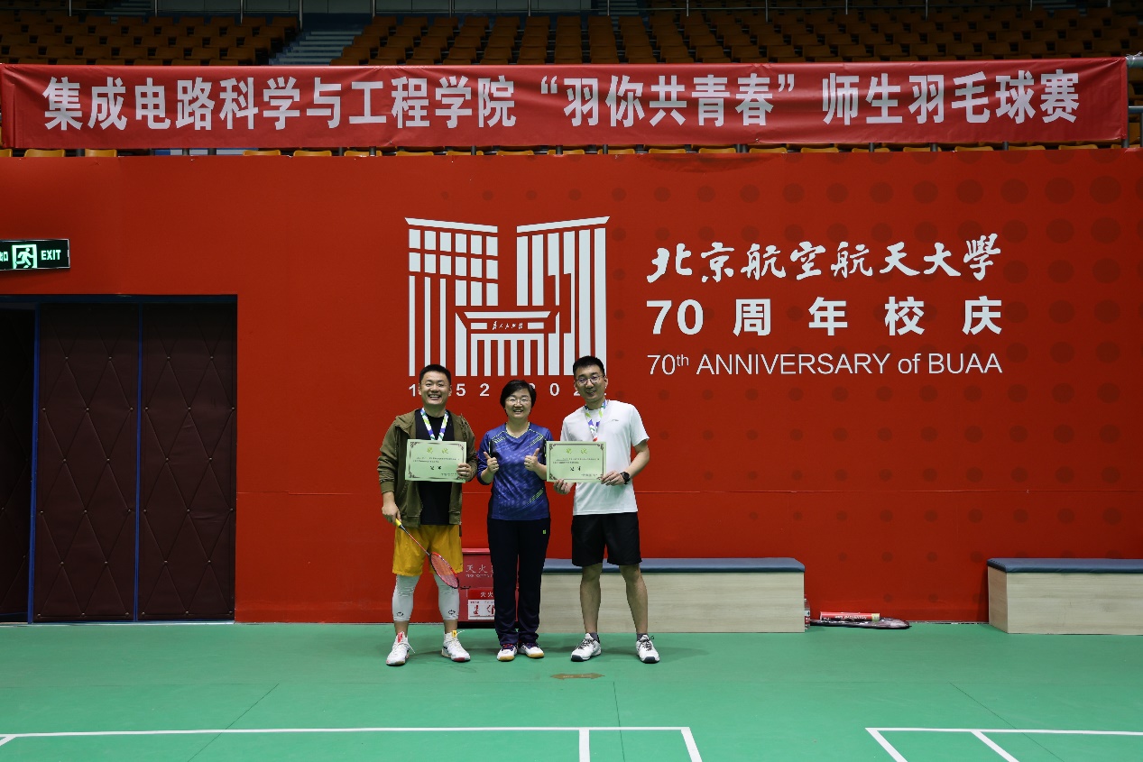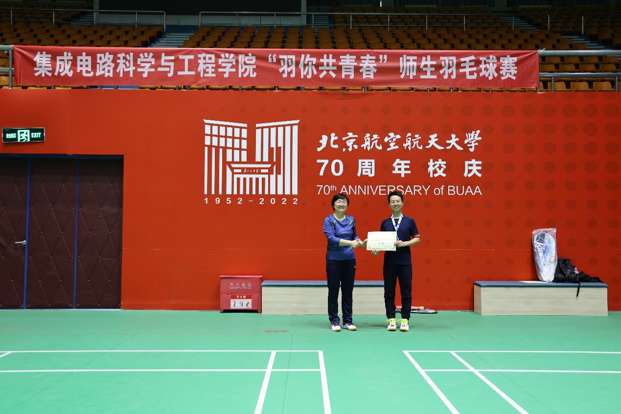 随着最后一球落地,在观众与队员阵阵欢呼声中,北航集成电路科学与工程学院第二届师生羽毛球赛在学院路校区体育馆圆满落下了帷幕。
