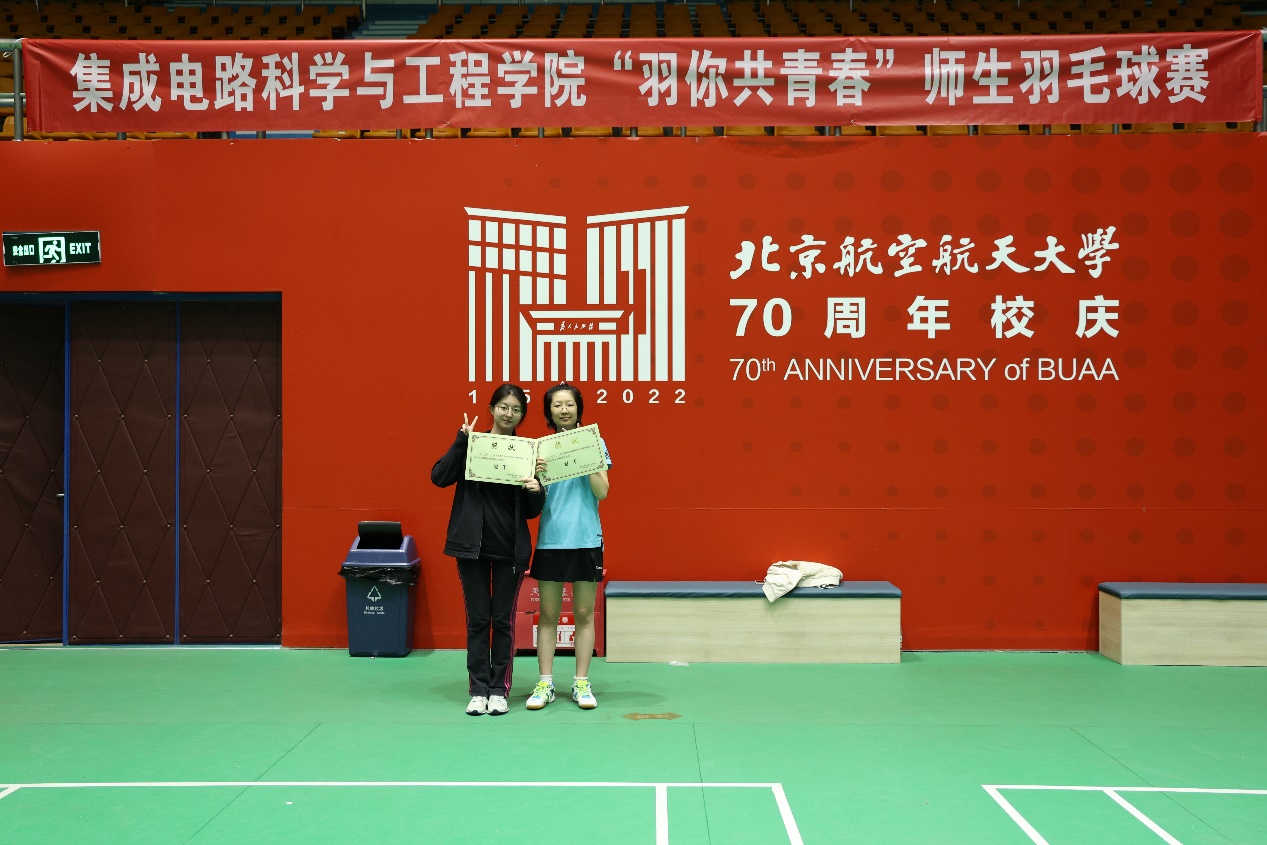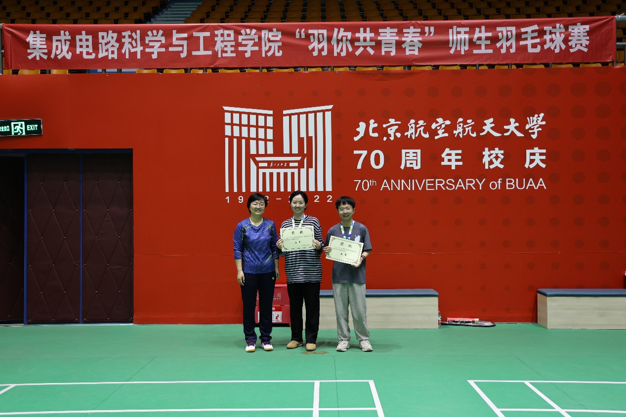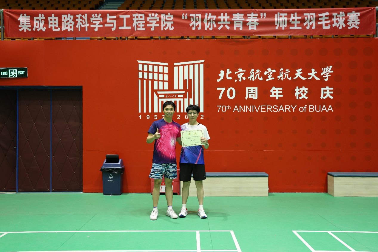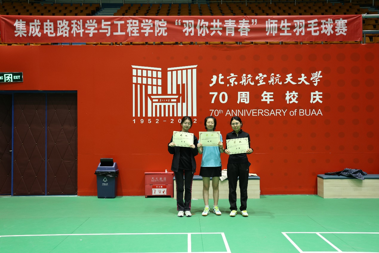 随着最后一球落地,在观众与队员阵阵欢呼声中,北航集成电路科学与工程学院第二届师生羽毛球赛在学院路校区体育馆圆满落下了帷幕。
