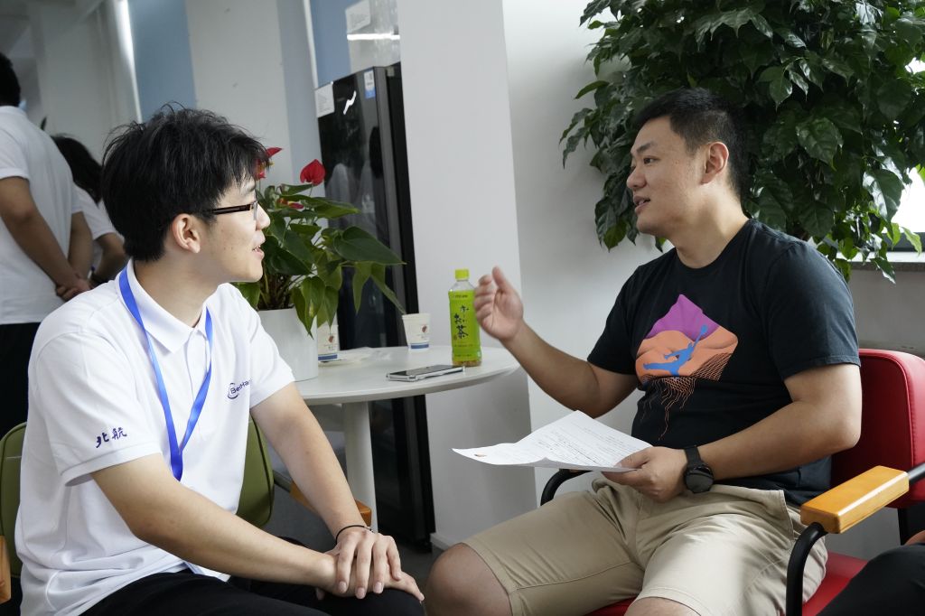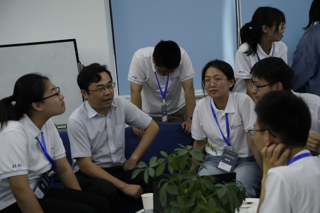 下午,夏令营综合面试在第一馆内进行,同时,学院在第一馆的二楼休息区安排了导师面对面茶歇活动,集成电路学院的材料与器件系、设计与工具系、工艺与装备系三个研究方向的导师与营员们进行了面对面的交流。通过这些交流,营员们进一步了解了集成电路学院的研究方向和导师团队,深切体会到了学院优越的学习环境和科研平台的优势。