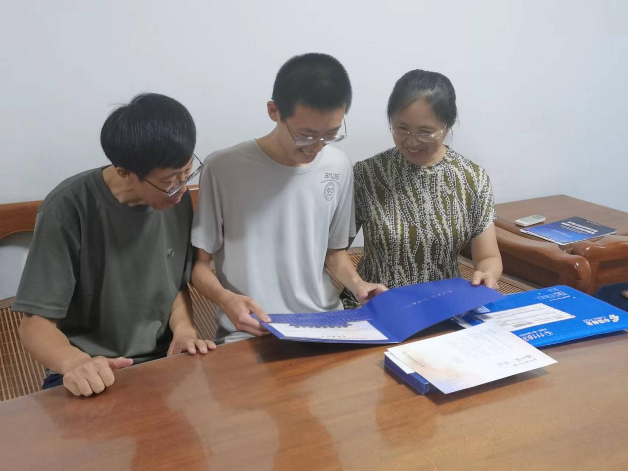 王禺尧同学满怀期待地打开录取通知书,与家人一同分享喜悦。一份录取通知书,承载着学子们对梦想的无限憧憬与期待,更见证了他们的努力与拼搏。