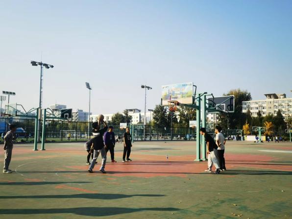 大三队员率先发起进攻,主力带球冲向对面篮板;大一队员奋起拦截,默契配合,顺势反攻。前两节比赛双方互不相让,比分咬得较紧。下半场易边再战,高密度的进攻与一次次竭力冲出重围让双方队员都已有些身体上的疲劳,但队友的互相鼓励让球员的斗志始终昂扬。
