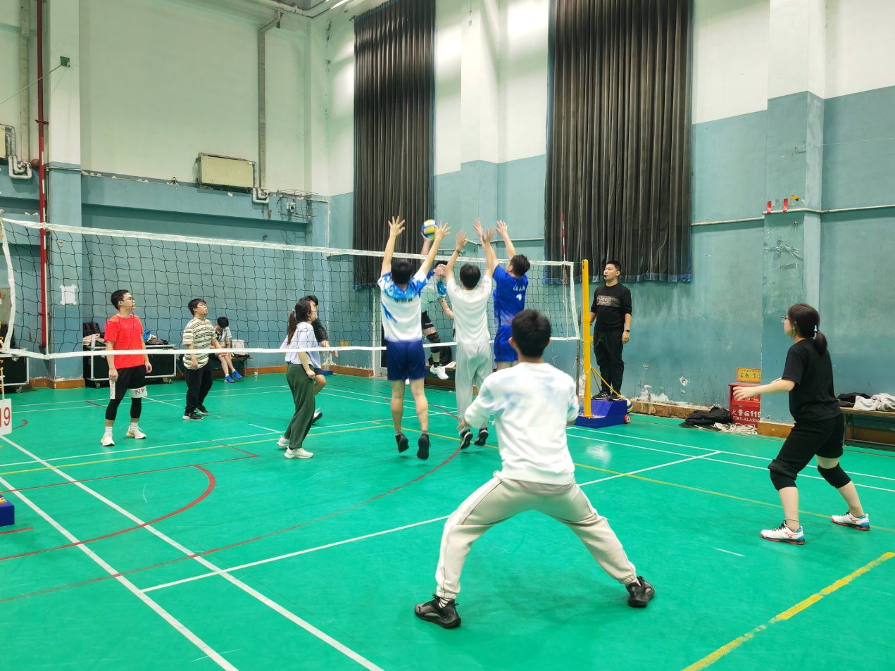 决赛中遇到阵容强大的学生联队,李仰震依仗优秀的拦网将对方的重扣牢牢限制;刘芳竹虽为女队员,但拦网和防守丝毫不逊色于男队员;刘嘉宁作为队长每每在焦灼时刻挺身而出,拿下关键得分。最终在我方五名队员团结紧密的配合下,鏖战三局顽强取胜。