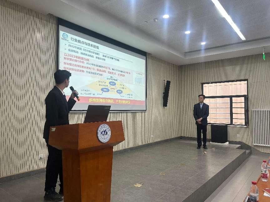 答辩分为5分钟的自我答辩和3分钟的评委提问。答辩评委由集成电路学院老师杨怀文,郑天宁,企业代表赵运坤,王东海,集成电路学院专职辅导员丁瑞云组成,各评委认真听取了各个项目的答辩流程,并在之后向选手提问,打分产生平均分决出获奖名单。