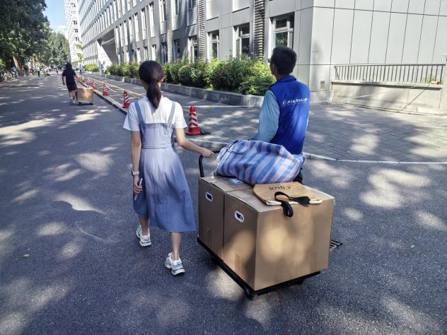 8月25日,学院8名志愿者早早到位,协助女生从12公寓、大运村公寓有序搬迁至13公寓。在辅导员和临时班委的协调下,此次搬迁工作井井有条,共同完成行李集中、装车卸车、行李清点等工作,并主动协助其他学院的同学搬运行李,充分展现了集电学子的互助精神与责任意识。