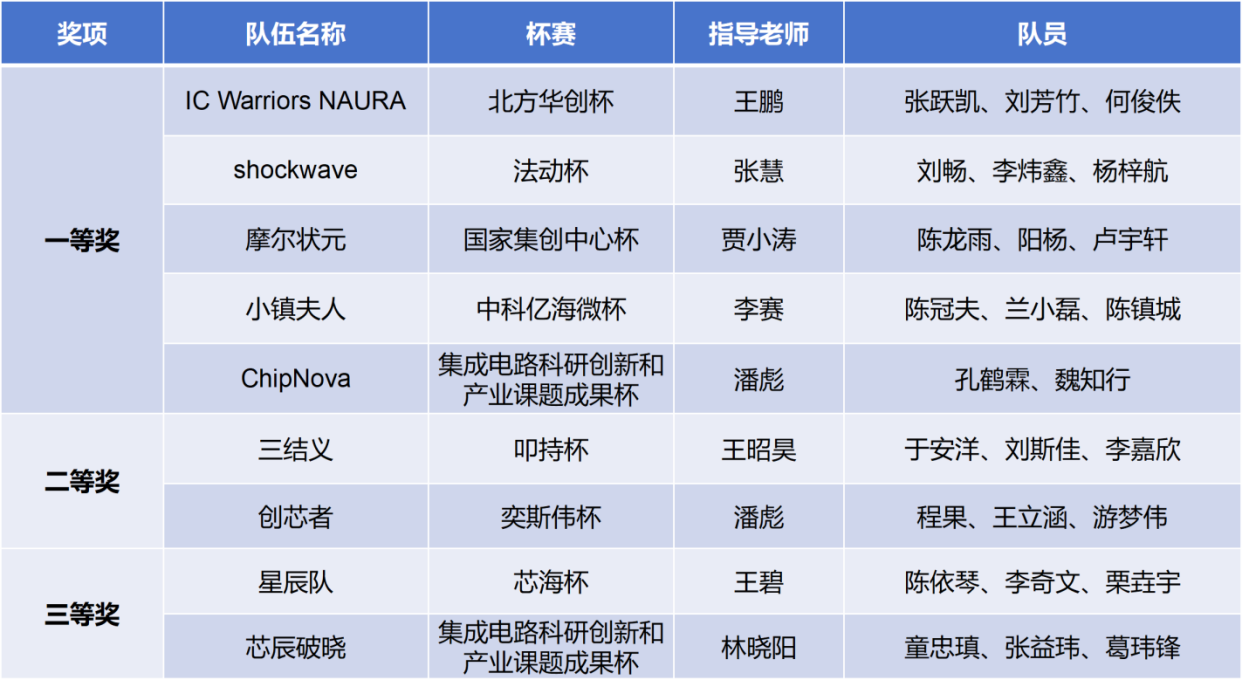 在华北分赛区决赛中,面对来自京津冀等地高校的强劲对手,我院参赛队伍通过项目答辩和技术演示的双重考核,最终9支队伍获得一等奖并成功晋级全国总决赛,8支队伍获得二等奖,13支队伍获得三等奖。参赛成绩较往年再创新高,充分展现了我院在集成电路领域的人才培养质量与技术创新实力。