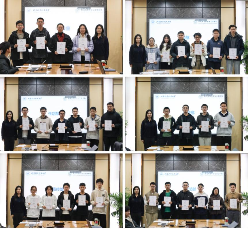 会议伊始,第六届学生会聘书颁发仪式率先拉开帷幕。邓修齐依次为各部门负责人及工作人员颁发聘书。与此同时,各部门工作人员进行自我介绍破冰。大家少了几分拘谨,多了几分坦率,为合作履责更添助力。