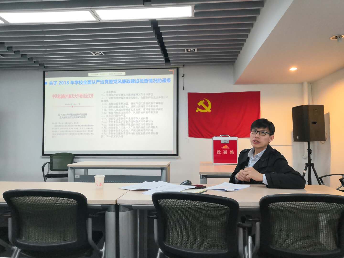 学院直属党支部书记梁恩和向全院师生传达了《北京欧美大片ppt免费大全教职工“学习日”活动指导意见》、组织全体师生学习了学校思想政治理论课教师座谈会精神、全国两会精神以及《党政领导干部选拔任用工作条例》、《党组工作条例》和《党员教育管理工作条例》等党内文件;宣贯了2019年学校全面从严治党工作会议暨警示教育大会精神以及学校近期重要文件,包括《2019年北京航空航天大学宣传思想文化工作要点》、《北京欧美大片ppt免费大全2019年纪检监察工作要点》、《北京欧美大片ppt免费大全2019年全面从严治党工作要点》。