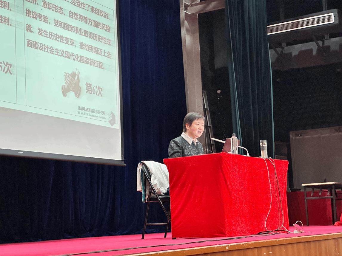 随后,苏东林院士结合自身学习二十大报告的体会和北航的建设发展历程,向大家分享如何将二十大精神落实到本职工作中。她表示,当前电磁安全成为国家安全的新领域,作为基础性学科,关键技术是买不来、等不来的,只有脚踏实地做好基础研究,才能实现科技自强,形成电磁兼容的“中国力量”。 作为该领域的院士及院士团队、专业组组长单位、产业联盟牵头单位等,我们要为国家做好战略咨询,要用十年磨一剑的精神,通过教育、科技、人才有机融合,实现电磁强国核心关键技术的自主可控。