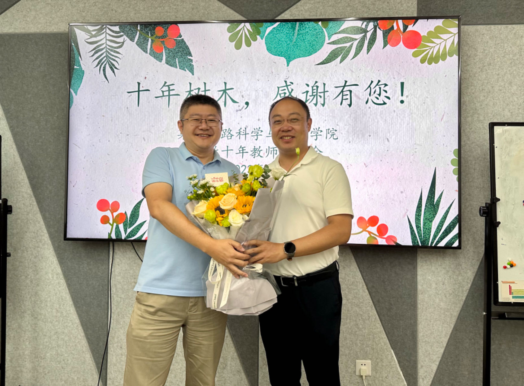 高静书记首先对入职十年的老师表示衷心的感谢和节日的慰问,她表示,老师们把青春和才华奉献给了学校和学院发展。学院的每一份成绩也都凝结着大家的辛勤工作和智慧汗水,希望大家在今后的工作中能够继续发扬勇于担当的精神,为学校和学院的发展建设添砖加瓦。